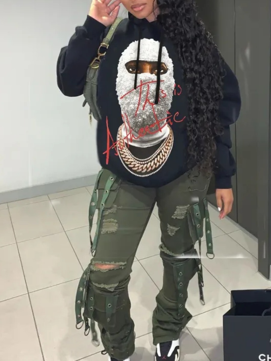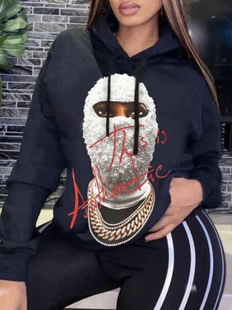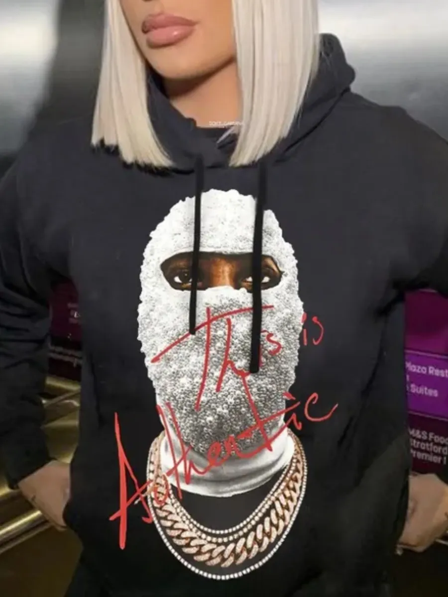 Home > Tops > Hoodie > LW Masked Face Letter Print Hoodie