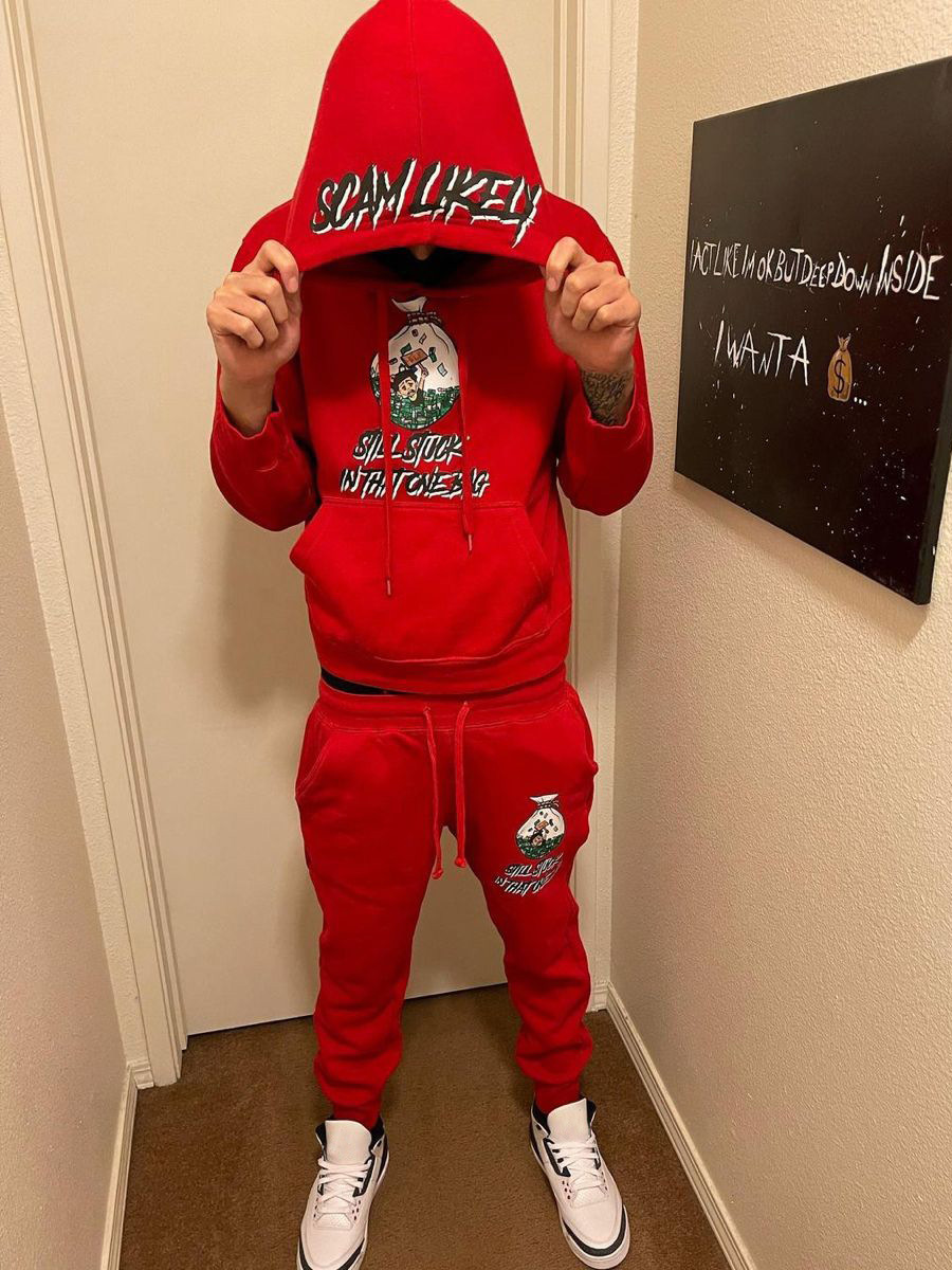 Home > Men Clothes > Two Pieces > Two-piece Pants Set > LW Men Letter Print Kangaroo Pocket Tracksuit Set