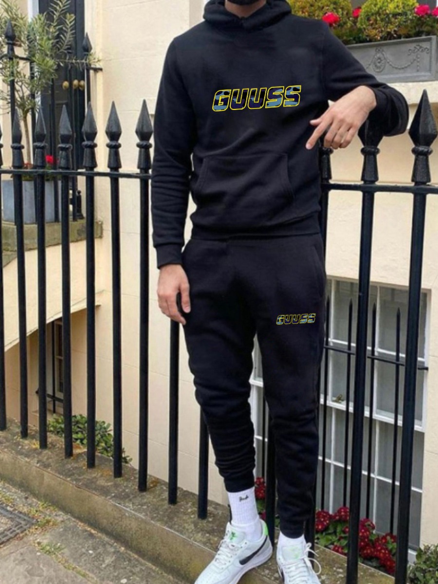 Home > Men Clothes > Two Pieces > Two-piece Pants Set > LW Men Letter Print Kangaroo Pocket Tracksuit Set