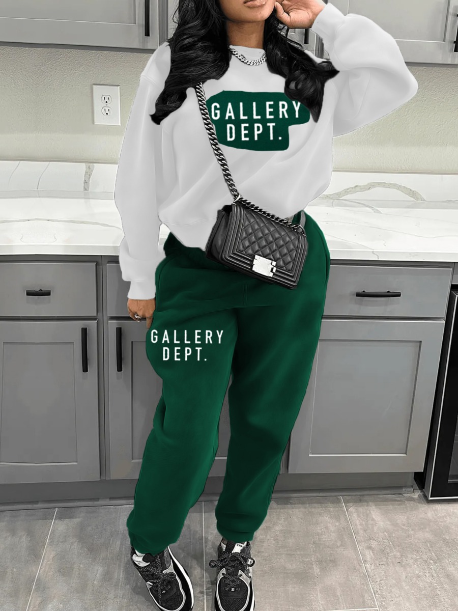 Home > Two Pieces > Two-piece Pants Set > LW Round Neck Letter Prrint Loose Pants Set
