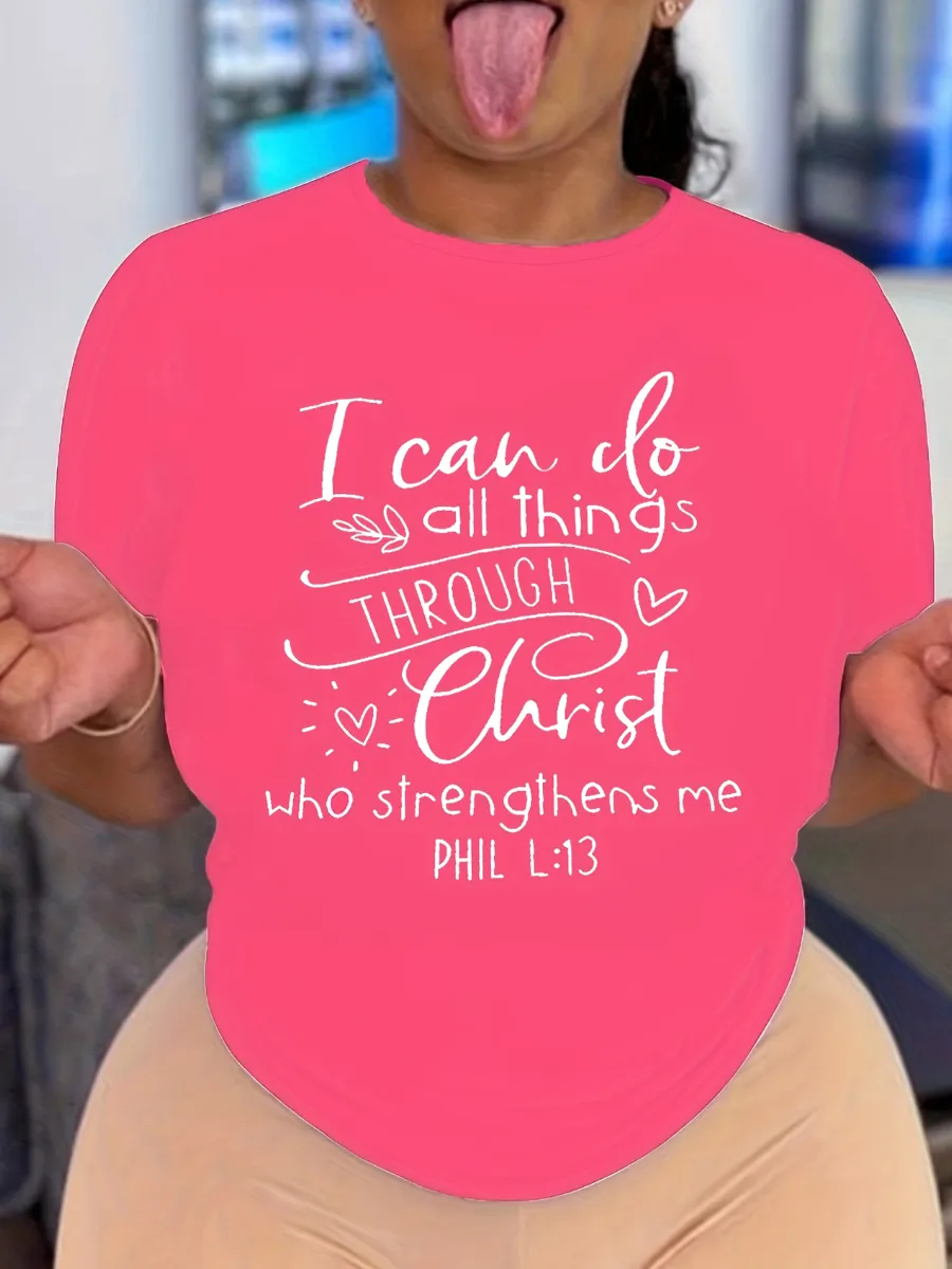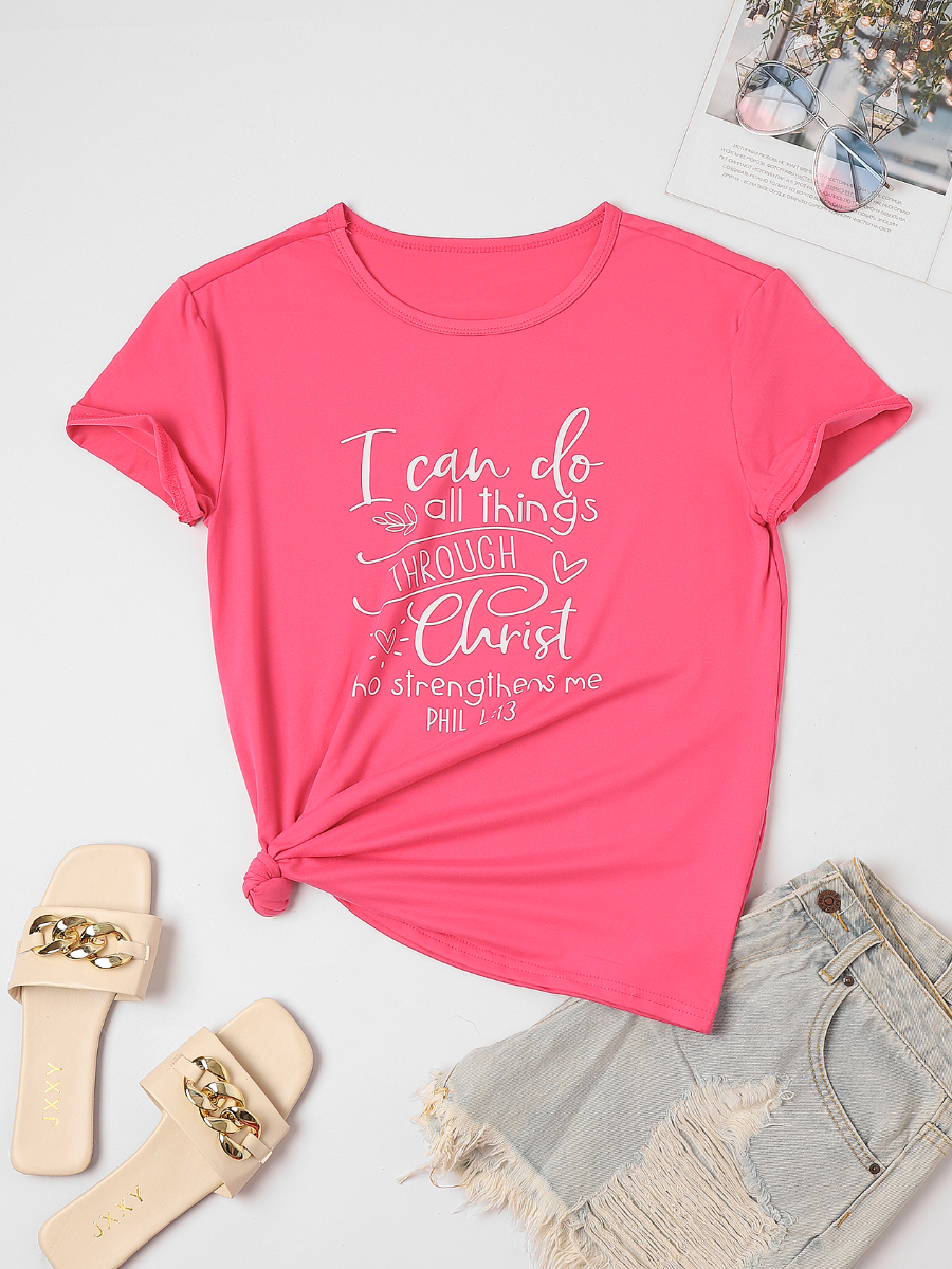 Home > Tops > T-shirt > LW I Can Do All Things Letter Print T-shirt