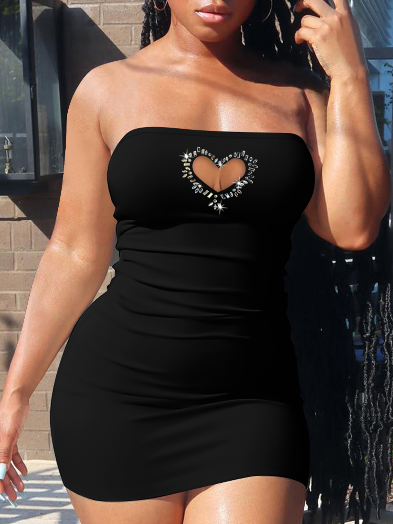 Home > Dresses > Mini Dress > LW SXY Off The Shoulder Rhinestone Heart Cut Out Bodycon Dress