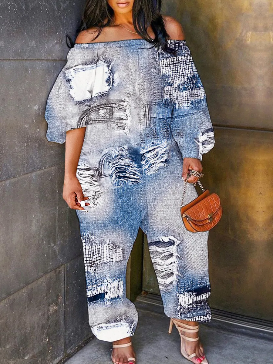 Home > Plus Size > Plus Size Jumpsuits > Plus Size Jumpsuit > LW Plus Size Imitation Denim Off The Shoulder Loose Jumpsuit