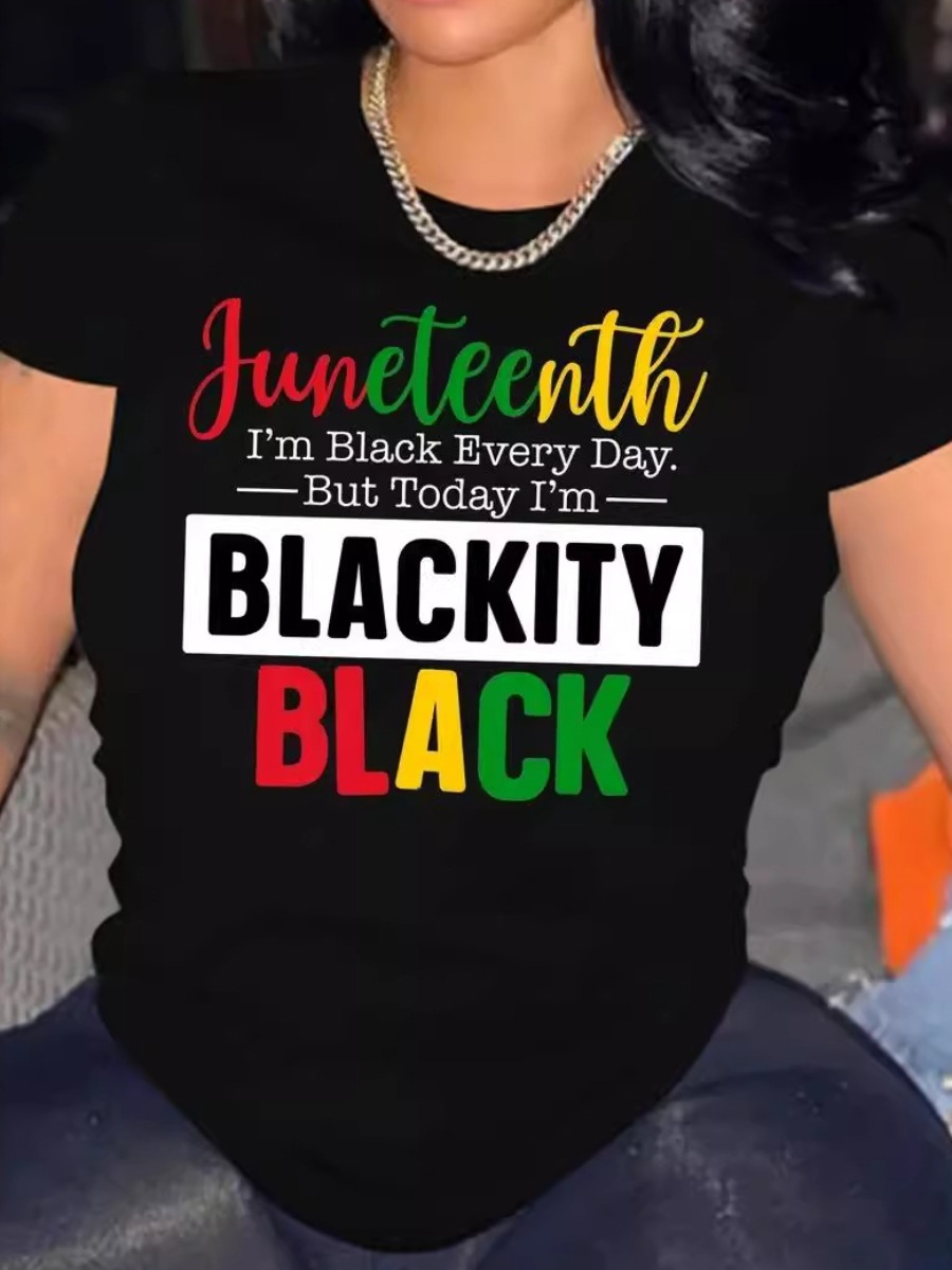 Home > Tops > T-shirt > LW Juneteenth Letter Print Patchwork T-shirt