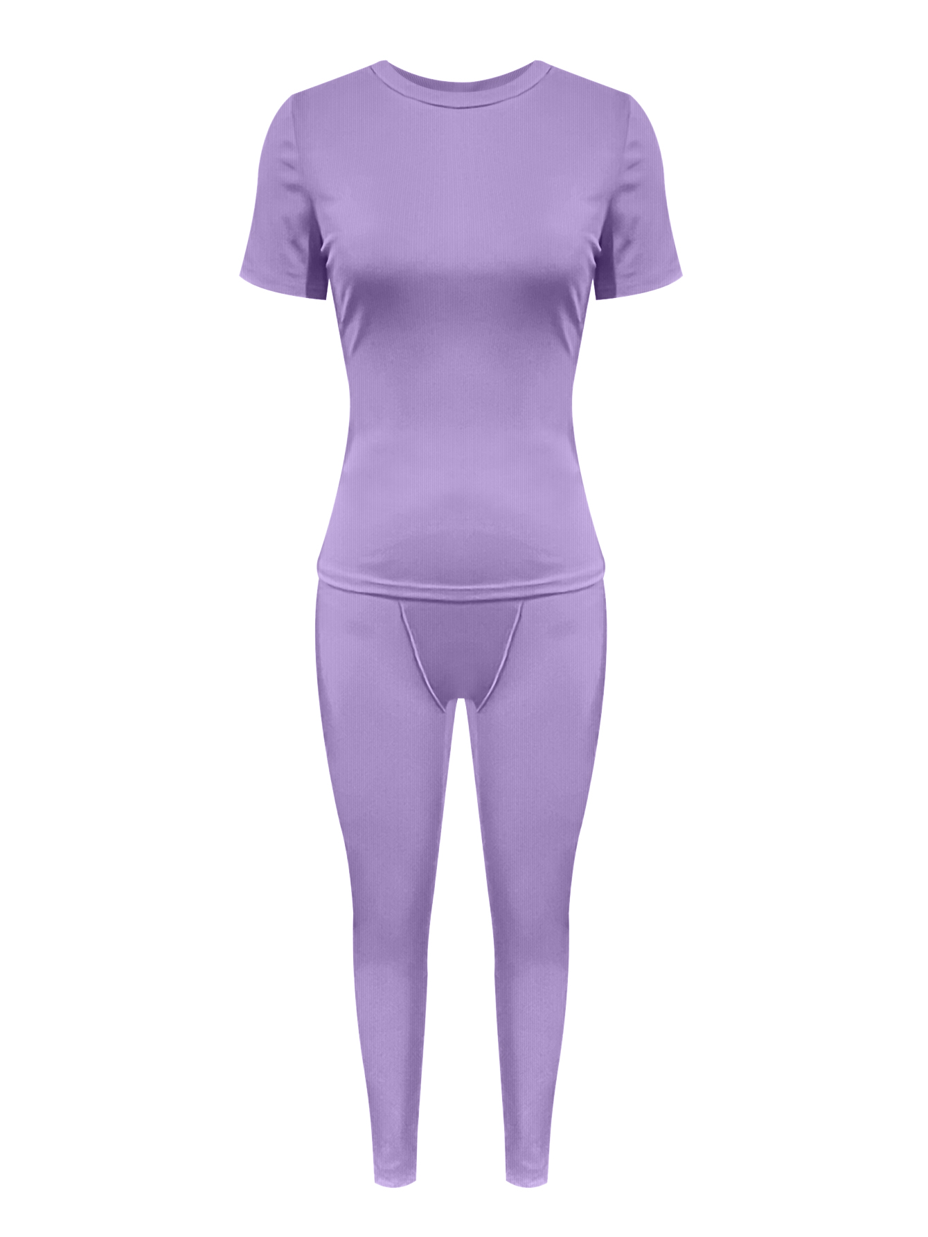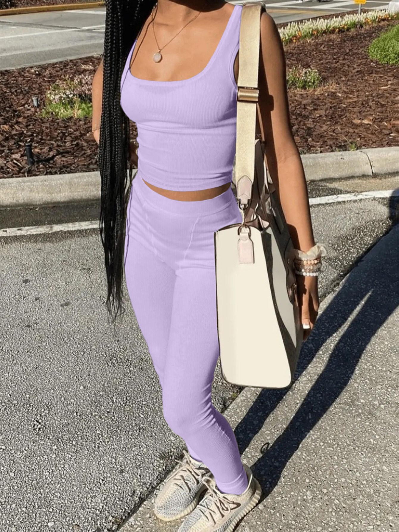 Home > Two Pieces > Two-piece Pants Set > LW Round Neck Plain Skinny Pants Set