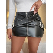 Home > Bottoms > Skirts > LW Faux Leather Buckle Belt Design Skirt