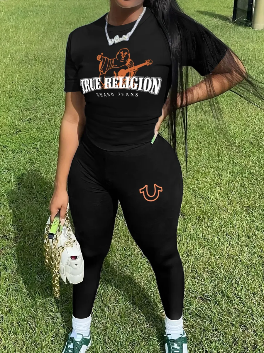 Home > Two Pieces > Two-piece Pants Set > LW Round Neck Figure Letter Print Pants Set