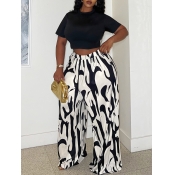 Home > Plus Size > Plus Size Two Pieces > Plus Size Two-piece Pants Set > LW BASICS Plus Size Round Neck Print Wide Leg Pants Set