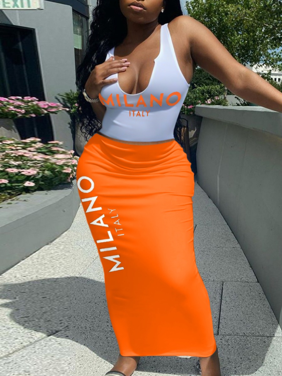 Home > Two Pieces > Two-piece Skirt Set > LW Cami Letter Print Skirt Set