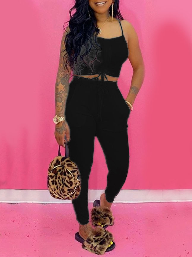 Home > Two Pieces > Two-piece Pants Set > LW Cami Ruched Drawstring Pants Set