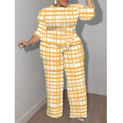 Home > Plus Size > Plus Size Two Pieces > Plus Size Two-piece Pants Set > LW BASICS Plus Size Plaid Print Belt Design Pants Set