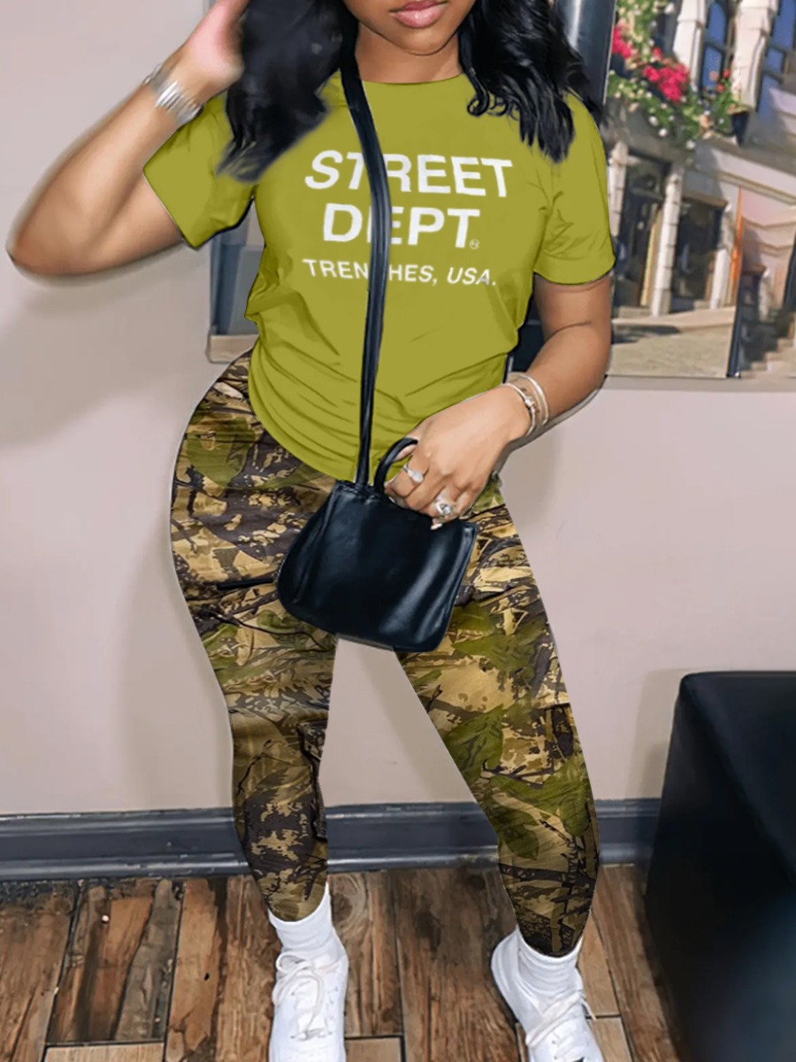 Home > Two Pieces > Two-piece Pants Set > LW Pattern Camo Letter Print Two-piece Pants Set