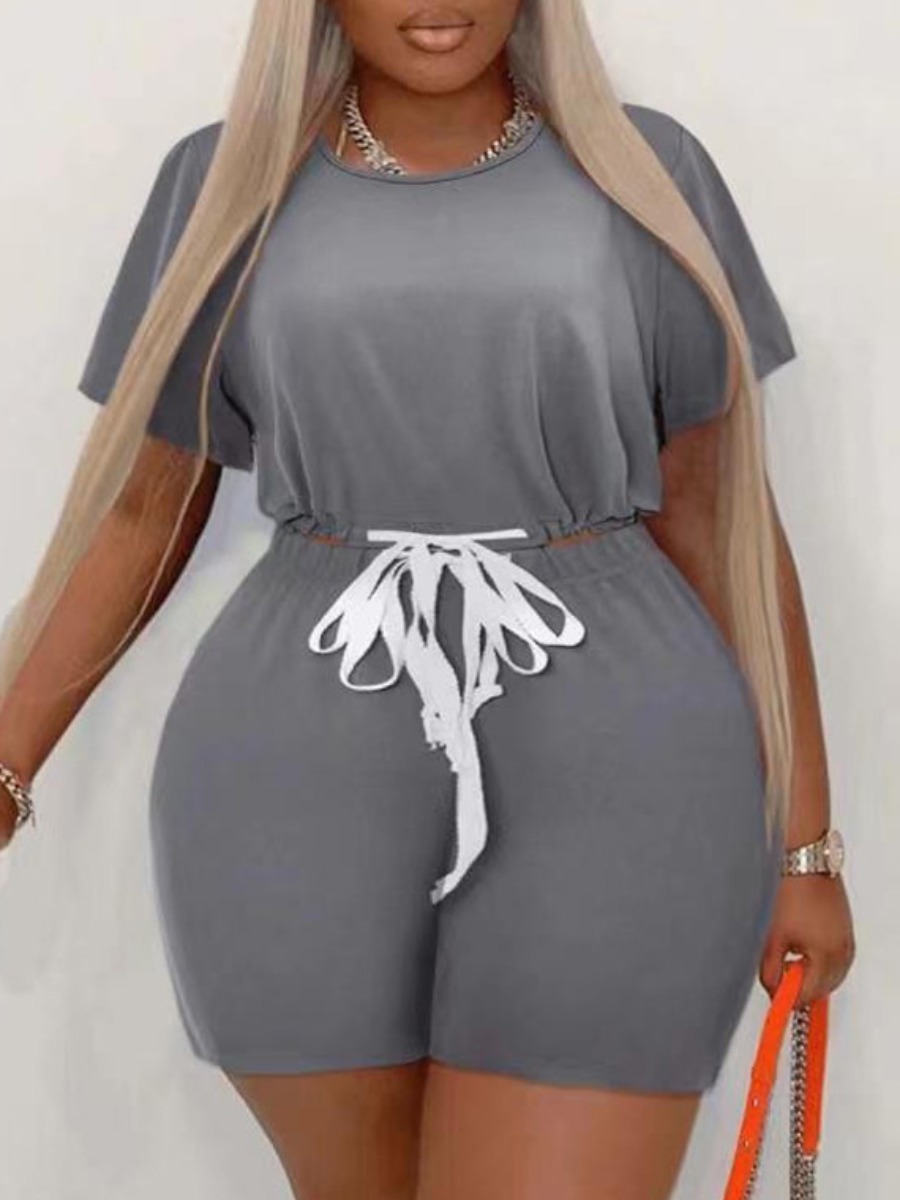 Home > Plus Size > Plus Size Two Pieces > Plus Size Two-piece Shorts Set > LW Plus Size Round Neck Drawstring Shorts Set