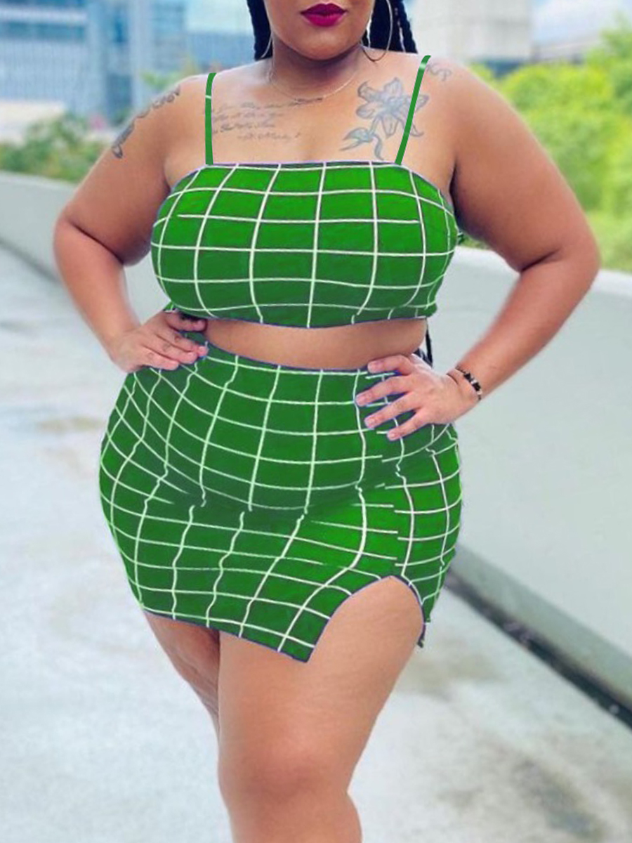 Home > Plus Size > Plus Size Two Pieces > Plus Size Two-piece Skirt Set > LW Plus Size Crop Top Plaid Print Slit Skirt Set