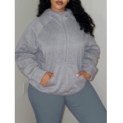 Home > Plus Size > Plus Size Top > Plus Size Sweatshirt&Hoodie > LW Plus Size Pocket Design Solid Color Sweatshirt&Hoodie