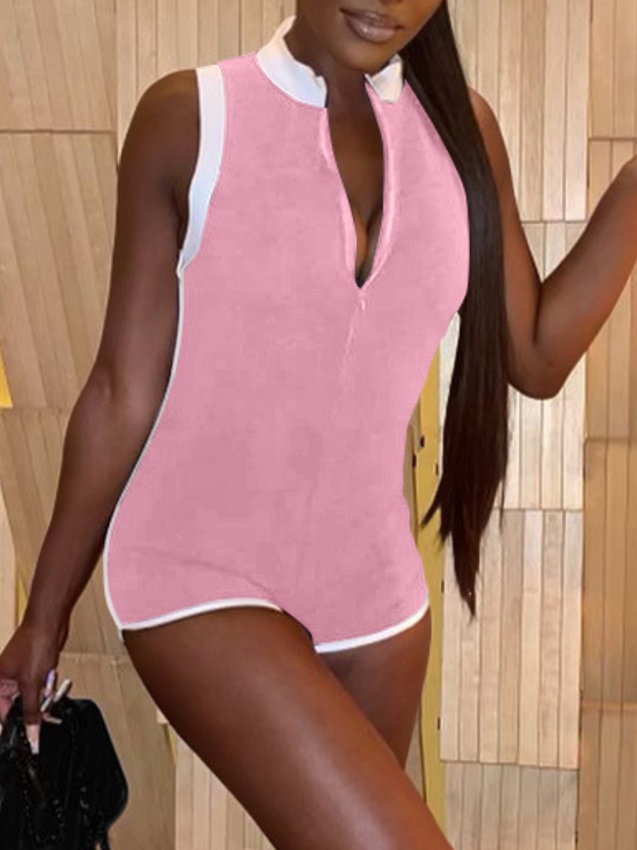 Home > Jumpsuits > Romper > LW BASICS Patchwork Color Contrast Romper