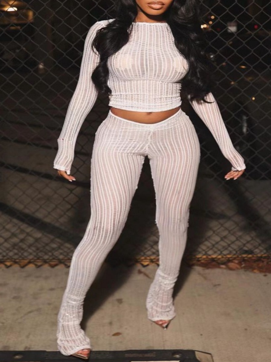 Home > Two Pieces > Two-piece Pants Set > LW Casual Polyester Round Neck Cut Out Solid Color Long Sleeve Two-piece Pants Set