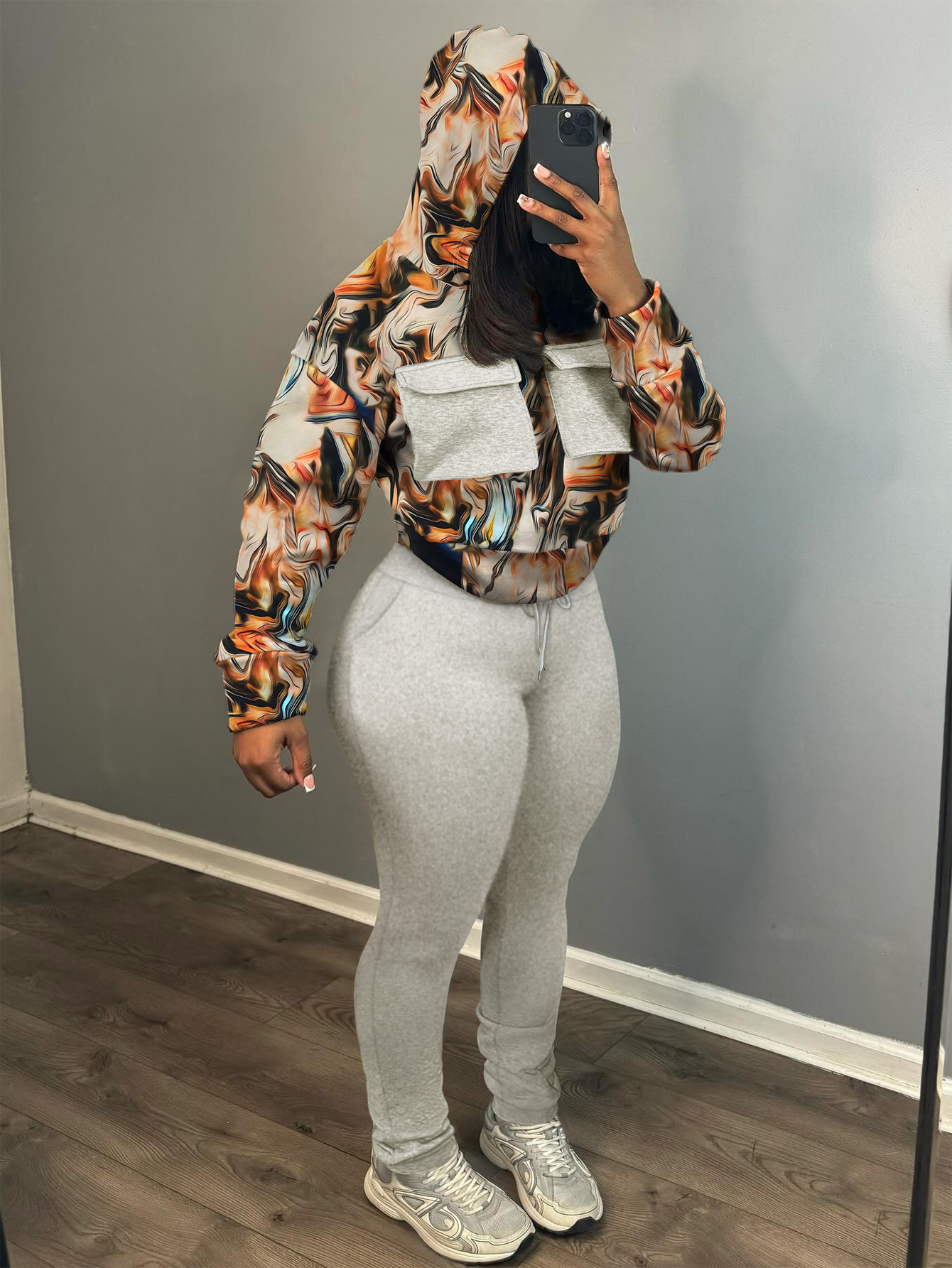 Home > Two Pieces > Two-piece Pants Set > LW Mixed Print Pocket Design Drawstring Pants Set