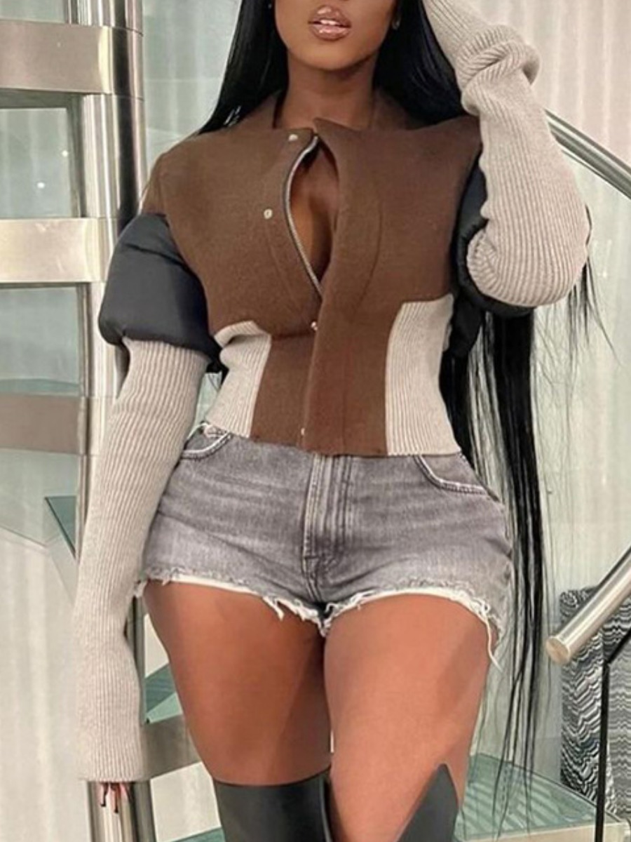 Home > Outwear&Coats > Coat&Jacket > LW Patchwork Color Contrast Coat&Jacket
