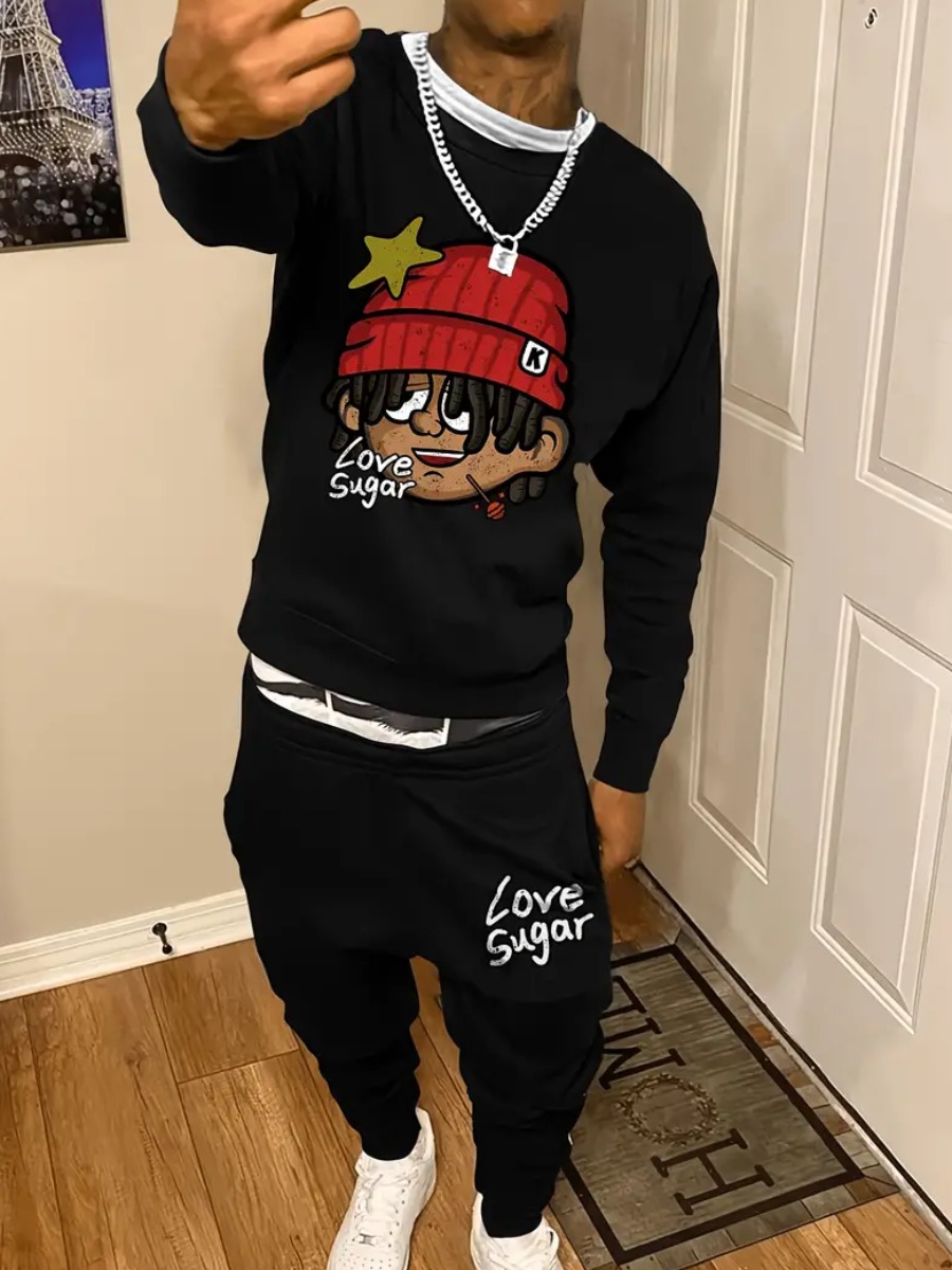 Home > Men Clothes > Two Pieces > Two-piece Pants Set > LW Men Pattern Cartoon Print Two-piece Pants Set