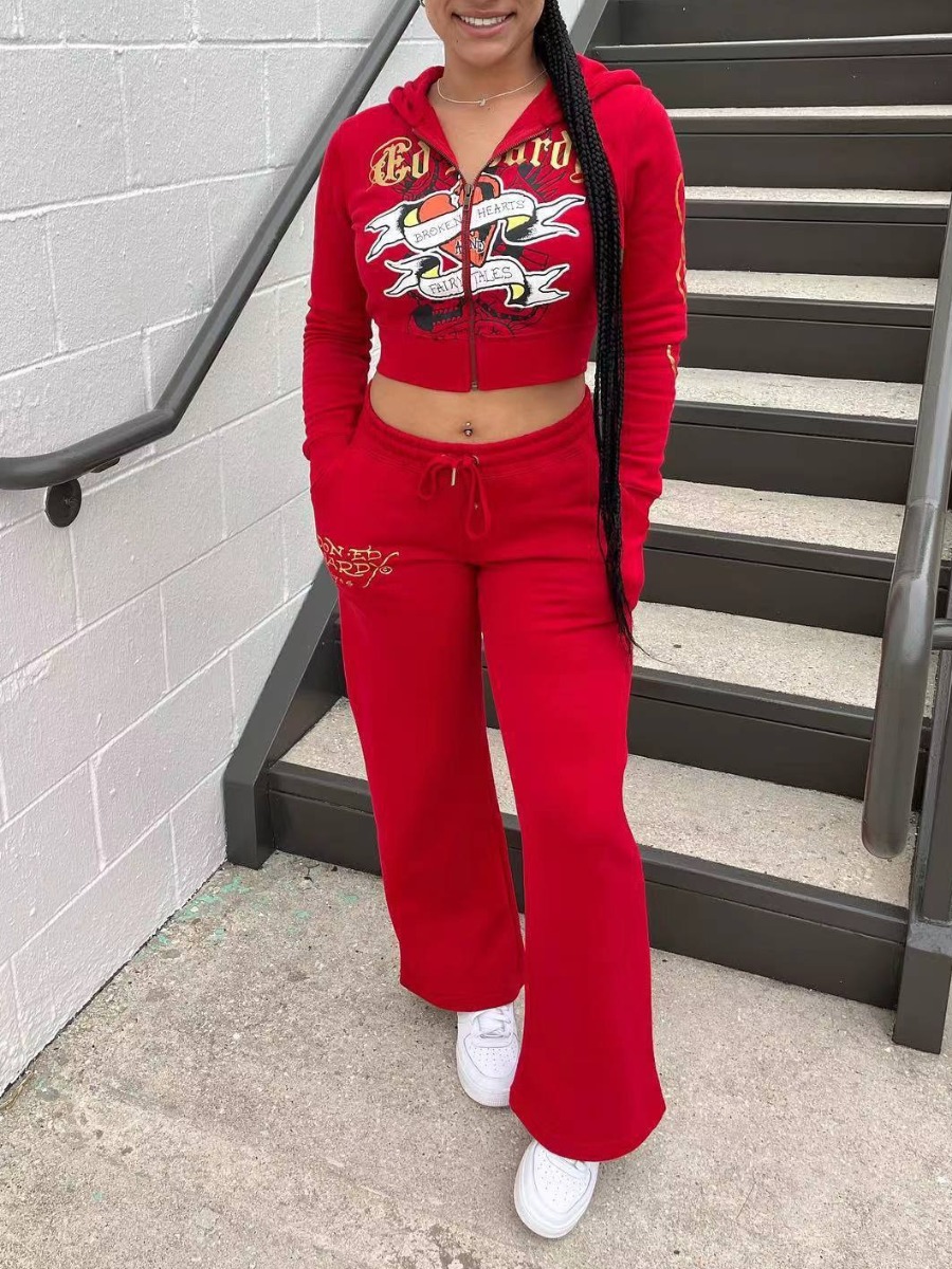 Home > Two Pieces > Two-piece Pants Set > LW Street Polyester Hooded Collar Pattern Mixed Print Long Sleeve Two-piece Pants Set