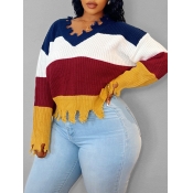 Home > Plus Size > Plus Size Top > Plus Size Sweater > LW Plus Size Striped Raw Edge Sweater
