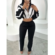 Home > Two Pieces > Two-piece Pants Set > LW Casual Tatting Turndown Collar Patchwork Color Block Long Sleeve Two-piece Pants Set