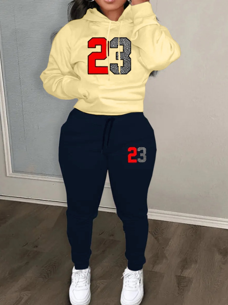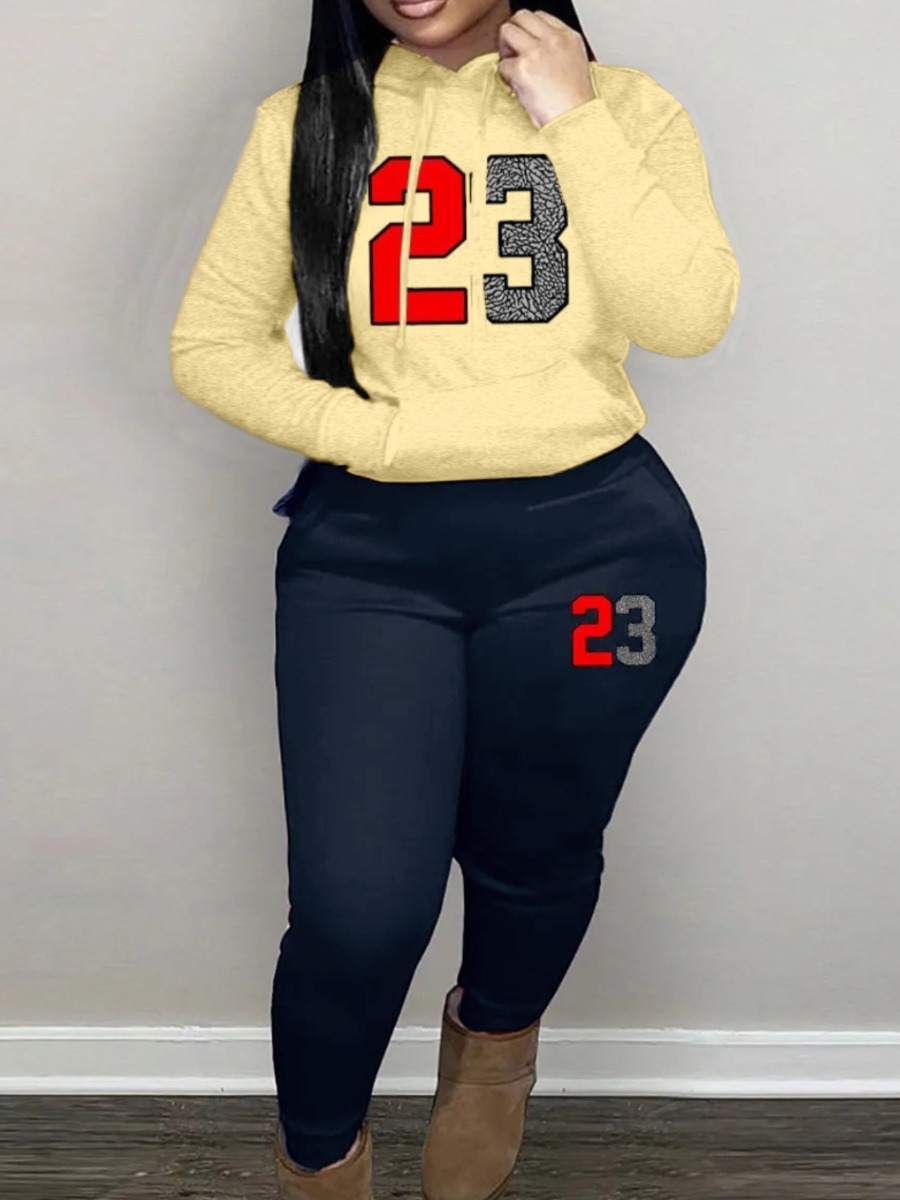 Home > Two Pieces > Two-piece Pants Set > LW Casual Polyester Hooded Collar Drawstring Print Long Sleeve Two-piece Pants Set