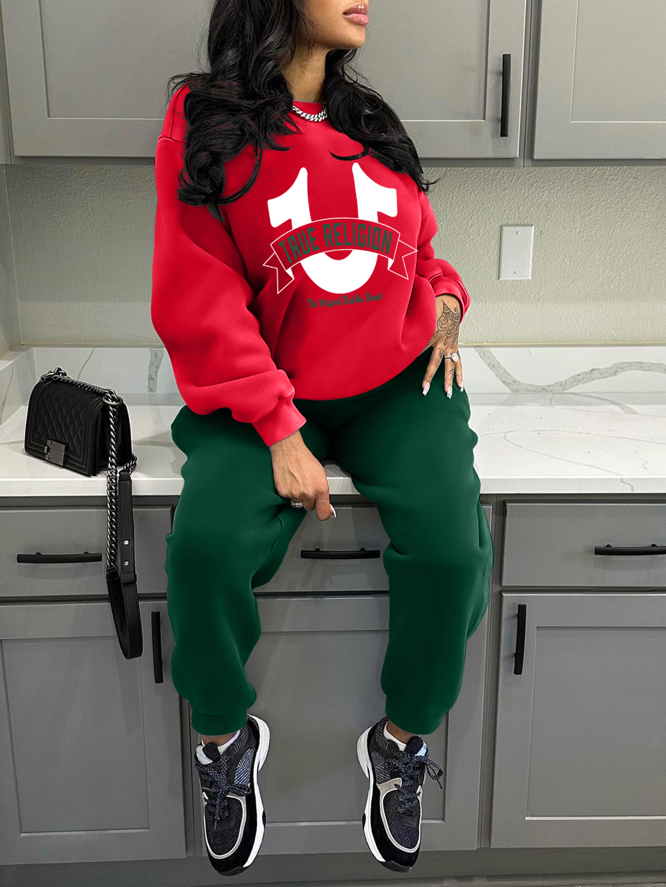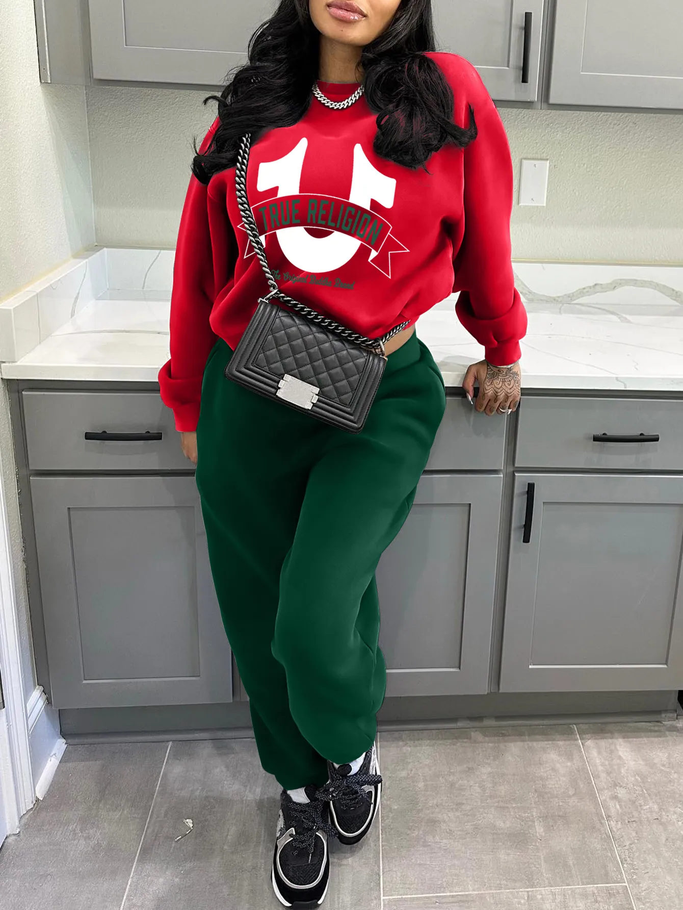 Home > Two Pieces > Two-piece Pants Set > LW Casual Sweat Round Neck Pattern Letter Long Sleeve Two-piece Pants Set