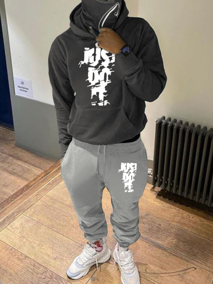 Home > Men Clothes > Two Pieces > Two-piece Pants Set > LW Men Graffiti Element Letter Regular Two-piece Pants Set