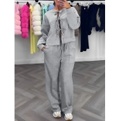 Home > Two Pieces > Two-piece Pants Set > LW Casual Sweat Round Neck Lace Up Solid Color Long Sleeve Two-piece Pants Set