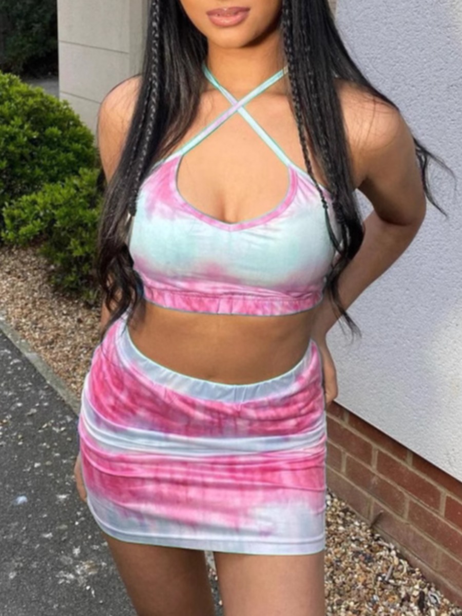Home > Two Pieces > Two-piece Skirt Set > LW SXY Sxy Polyester Halter Cut Out Tie Dye Sleeveless Two-piece Skirt Set