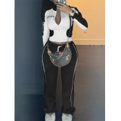 Home > Two Pieces > Two-piece Pants Set > LW Casual Sweat Mandarin Collar Patchwork Letter Long Sleeve Black And White Two-piece Pants Set