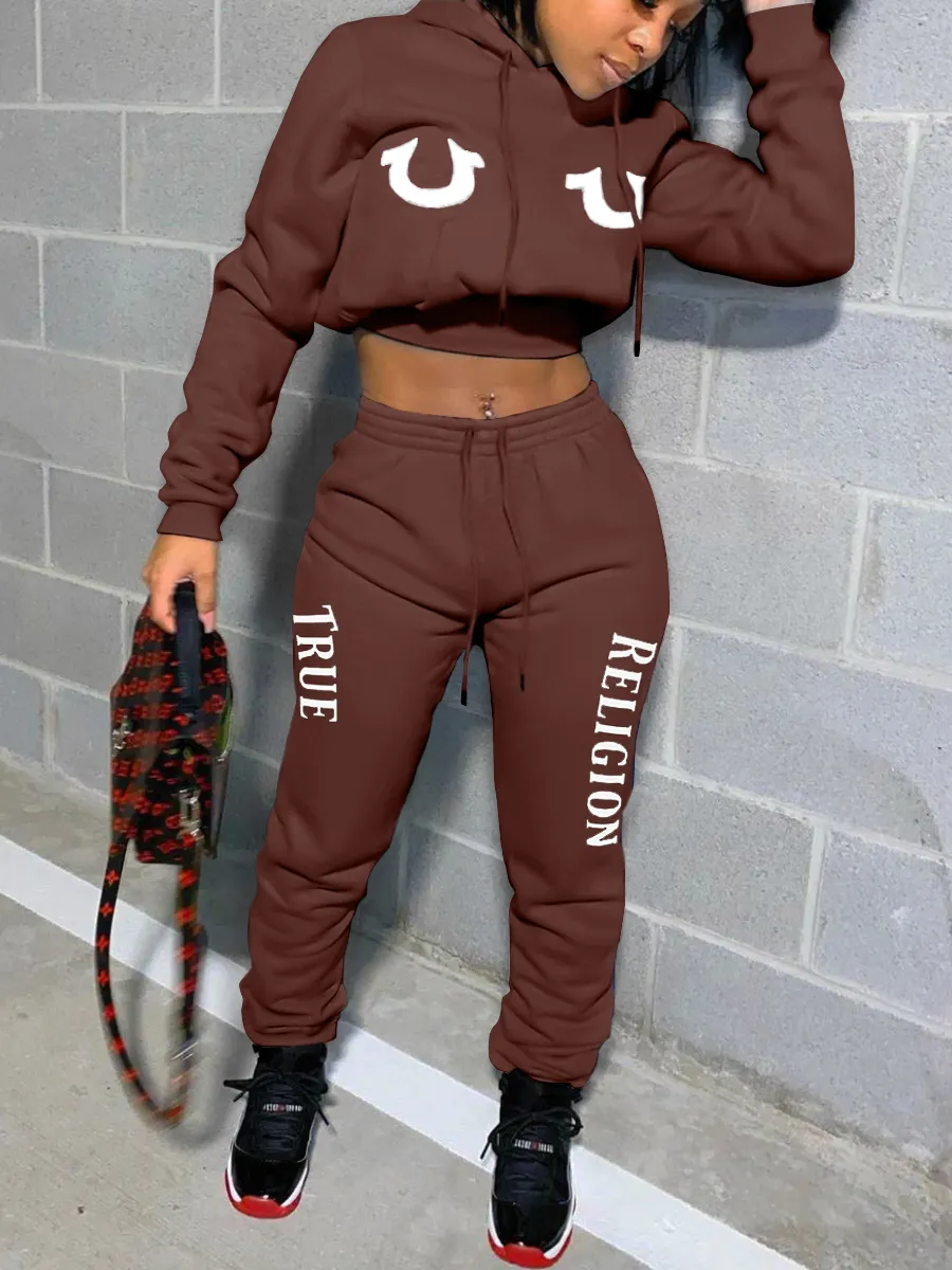 Home > Two Pieces > Two-piece Pants Set > LW Street Polyester Hooded Collar Pattern Letter Print Long Sleeve Two-piece Pants Set
