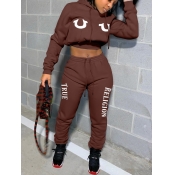 Home > Two Pieces > Two-piece Pants Set > LW Street Polyester Mock Neck Pattern Letter Geometric Long Sleeve Two-piece Pants Set