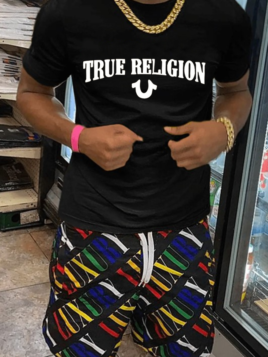Home > Men Clothes > Top > T-shirt > LW Men Pattern Letter T-shirt