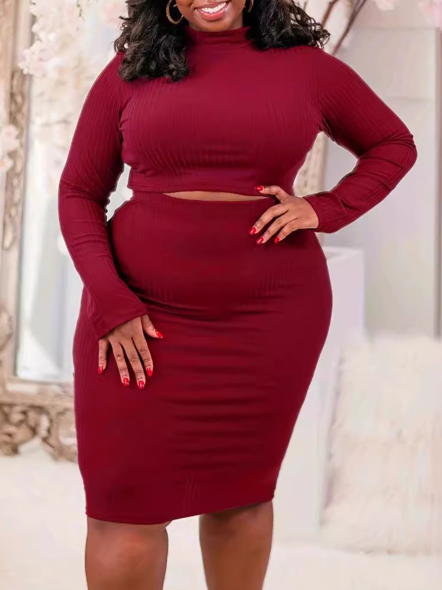 Home > Plus Size > Plus Size Two Pieces > Plus Size Two-piece Skirt Set > LW BASICS Plus Size Solid Color Two-piece Skirt Set