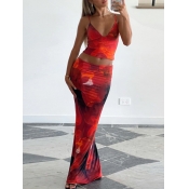 Home > Two Pieces > Two-piece Skirt Set > LW Vacation Polyester V Neck Pattern Medium Flower Print Sleeveless Two-piece Skirt Set