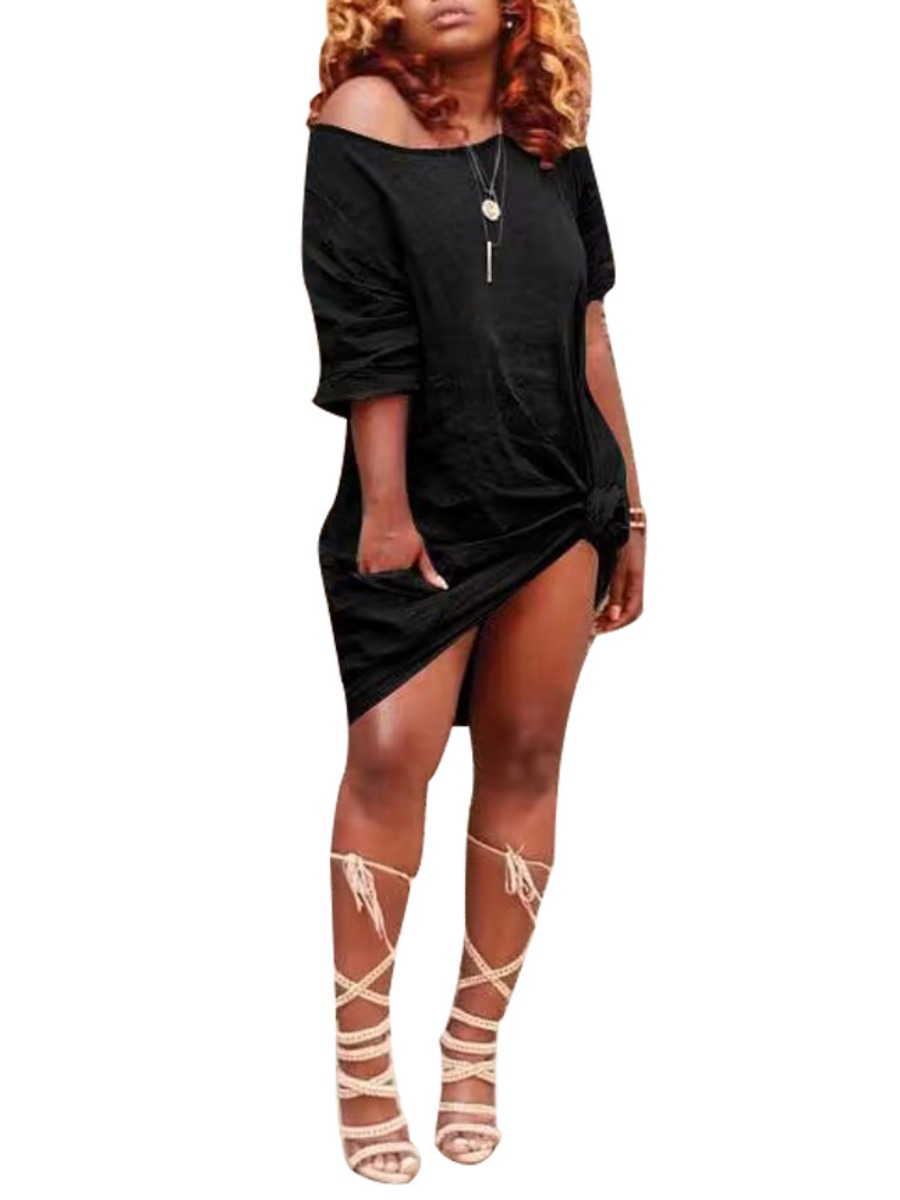 Home > Dresses > Mini Dress > LW BASICS Knot Solid Color Mini Dress