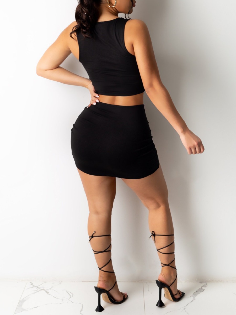 LW SXY Sxy Polyester Collarless Bandage Design Solid Color Sleeveless Two-piece Skirt Set