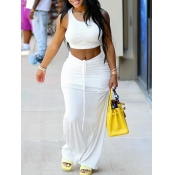 Home > Two Pieces > Two-piece Skirt Set > LW Casual Modal Round Neck Drawstring Shirred Solid Color Sleeveless Two-piece Skirt Set