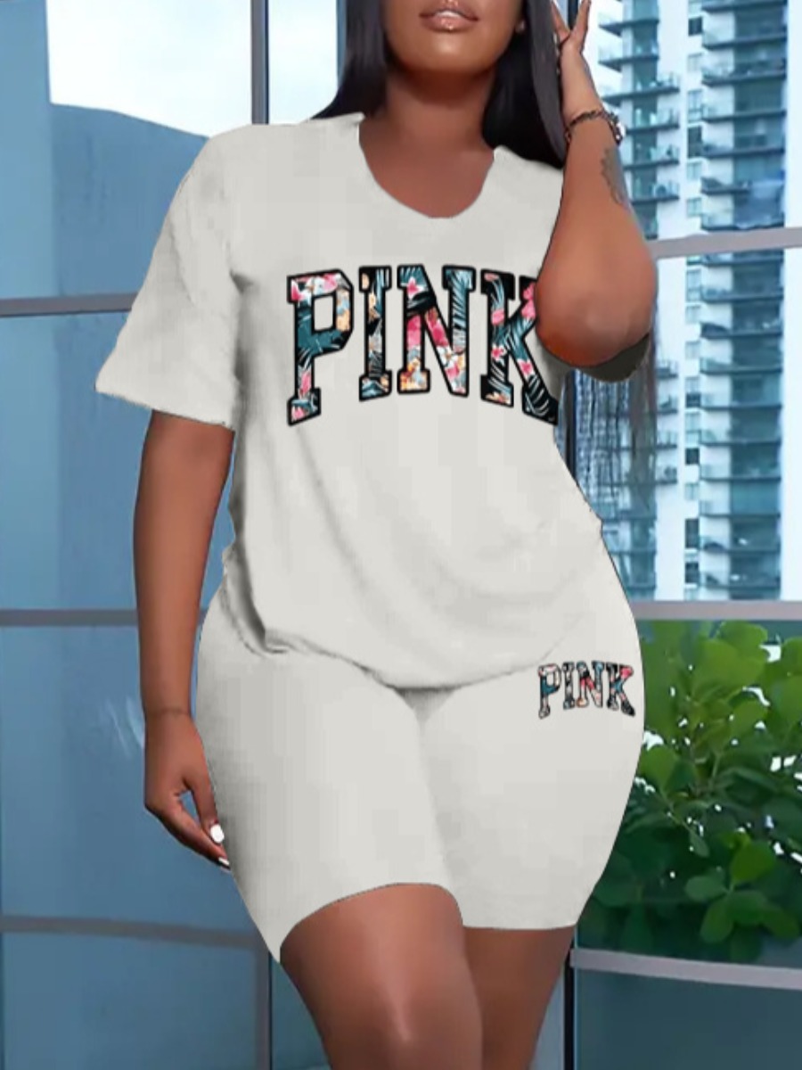Home > Two Pieces > Two-piece Shorts Set > LW Street Polyester Round Neck Pattern Letter Short Sleeve Two-piece Shorts Set