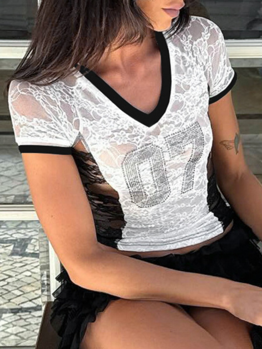 Home > Tops > T-shirt > LW Patchwork Lace Geometric Pattern T-shirt