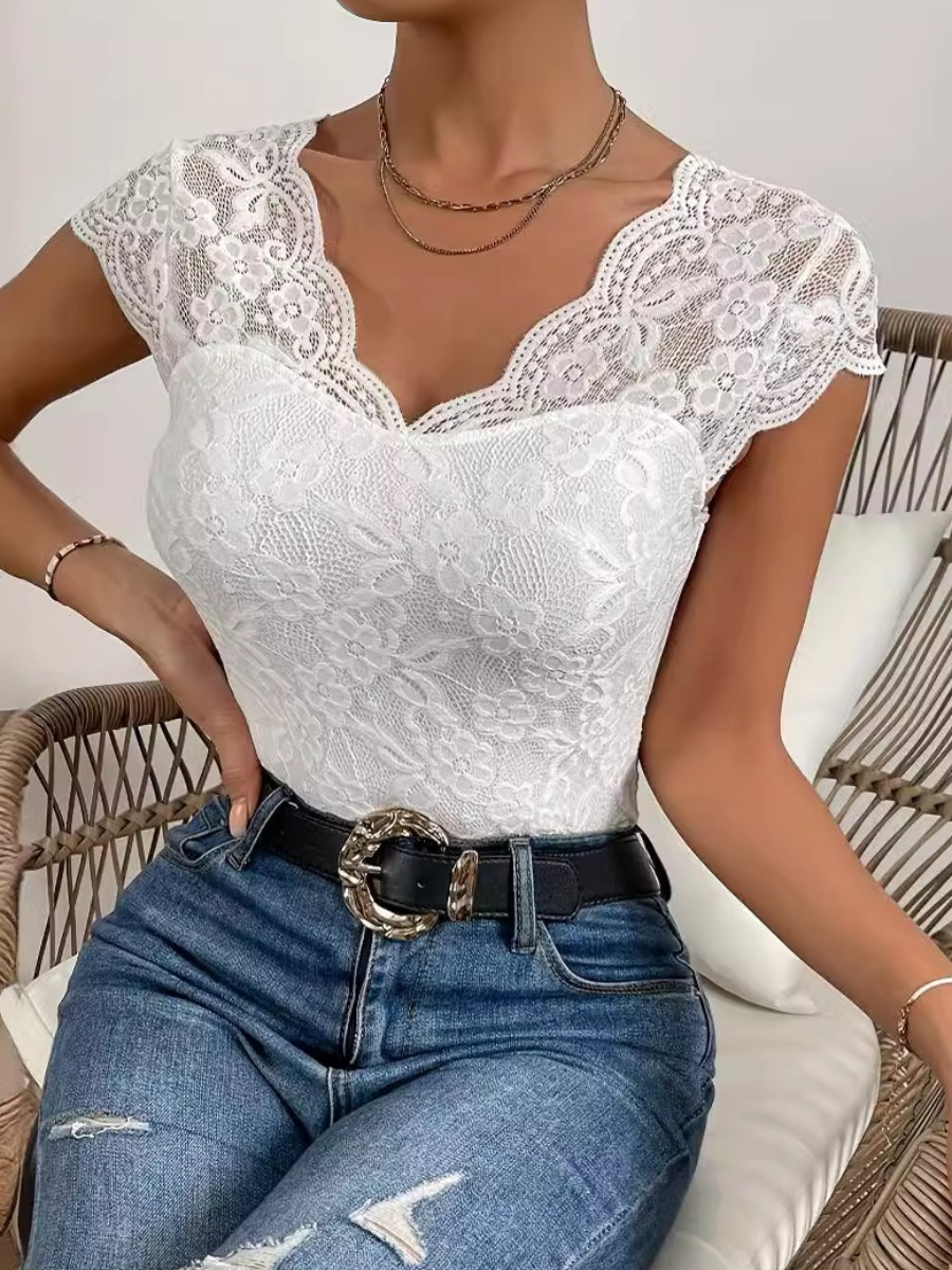 Home > Tops > T-shirt > LW Lace Solid Color T-shirt