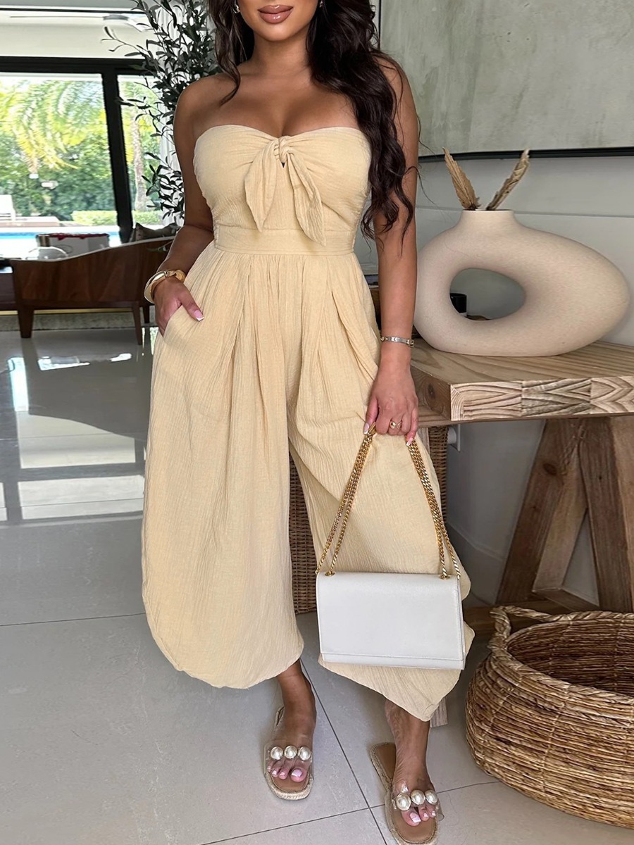 Home > Jumpsuits > Jumpsuit > LW BASICS Bandage Design Solid Color Jumpsuit