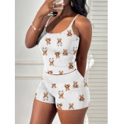 Home > Two Pieces > Two-piece Shorts Set > LW Casual Polyester U Neck Animal Print Cartoon Sleeveless Two-piece Shorts Set