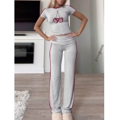 Home > Two Pieces > Two-piece Pants Set > LW Casual Modal Round Neck Patchwork Mixed Print Short Sleeve Two-piece Pants Set
