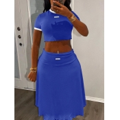 Home > Two Pieces > Two-piece Skirt Set > LW BASICS Casual Polyester Round Neck Solid Color Short Sleeve Two-piece Skirt Set