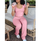 Home > Two Pieces > Two-piece Pants Set > LW Casual Modal U Neck Embroidered Letter Short Sleeve Two-piece Pants Set