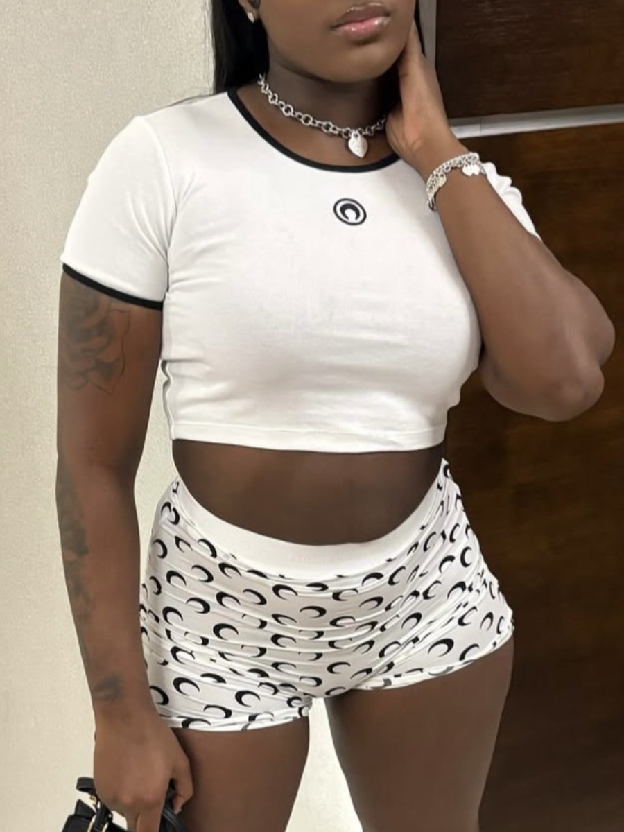Home > Two Pieces > Two-piece Shorts Set > LW Casual Polyester Round Neck Pattern Geometric Short Sleeve Two-piece Shorts Set